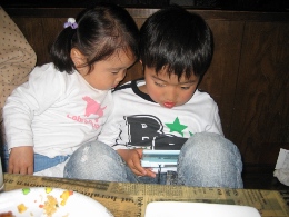 今日は2家族でお食事してまいりました♪ 場所はお子様達も楽しめる居酒屋に決定☆ 実に1年ぶりくらいで、楽しかった~! お子様達も大きくなってた! お兄ちゃんのほうが、照れてなかなか写真を撮らせてくれなかったので、 隠し撮りでございます(笑 DSに夢中になっている間に、シャッターチャーンス! あ~、なんておいしそうなホッペなんだろう~~~~!!! プニプニッと柔らかくて、モチモチ。 次はランチ行きましょうね~! あ、モチクリームも♪(←思いっきり私信ですみません)