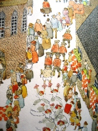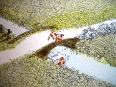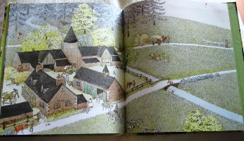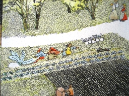 『旅の絵本』 絵:安野光雅 発行元:福音館書店 *現在「旅の絵本Ⅵ」まで発売中 安野光雅がなにかに迷いながら進んだ道は、この絵本の世界そのままだそうです。 で、それはまさに私の理想の世界です。 なぜなら童話の一場面や有名絵画がさり気なく描かれているんです。 たとえば……